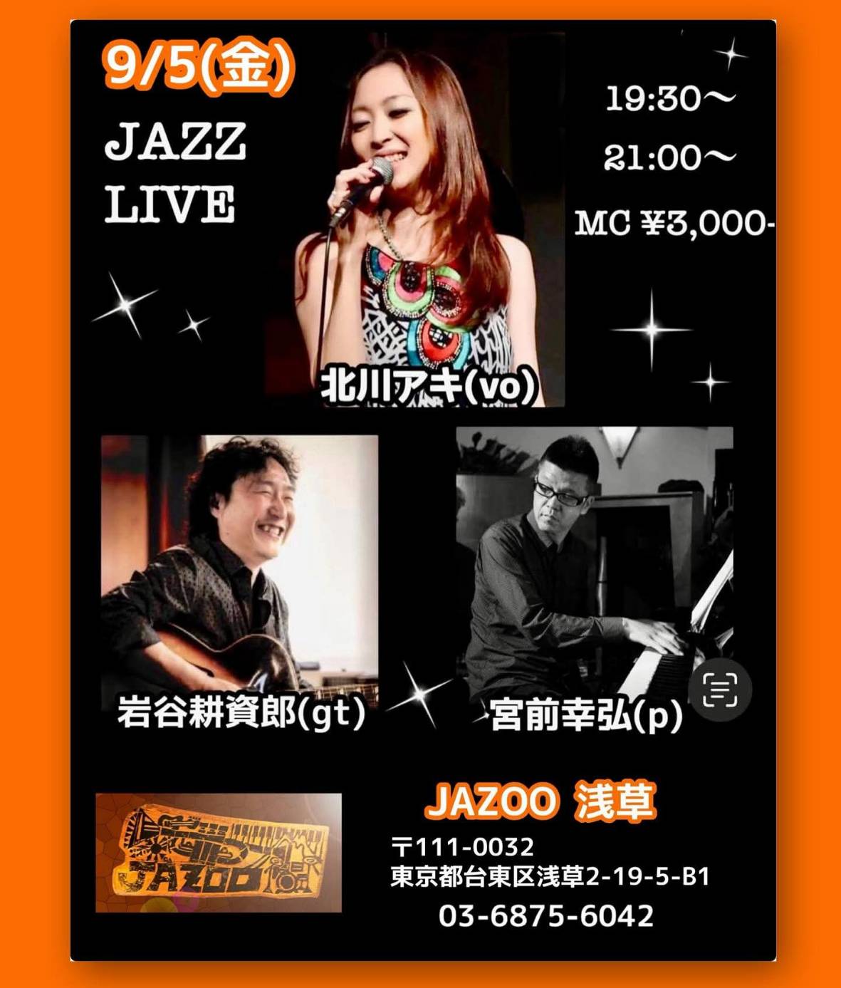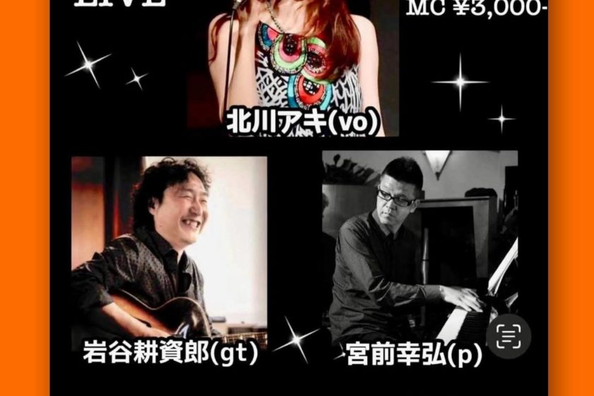 北川アキ LIVE and セッション 1月 16 Fri 2026 LIVEセッション 北川アキ(vo) 宮前幸弘(pf) 岩谷耕資郎(gt) OPEN 19:00 START 19:30 CHARGE 3000円 前のスケジュール 次のスケジュール