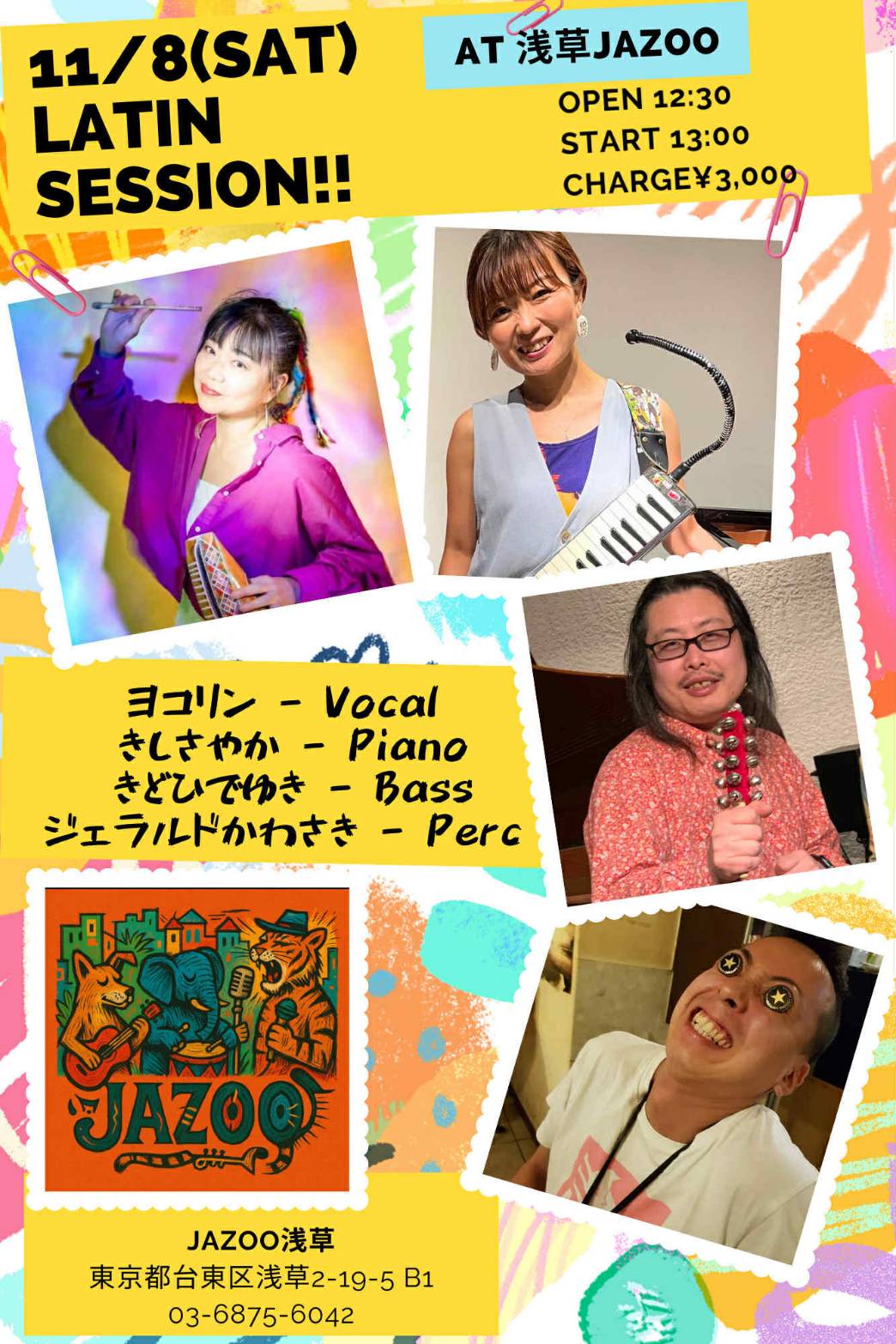 LATIN SESSION! 11月 8 Sat 2025 セッション ヨコリン(Vo) きしさやか(pf) きどひでゆき(B) ジェラルドかわさき(Per) OPEN 12:30 START 13:00 CHARGE 3000 前のスケジュール 次のスケジュール