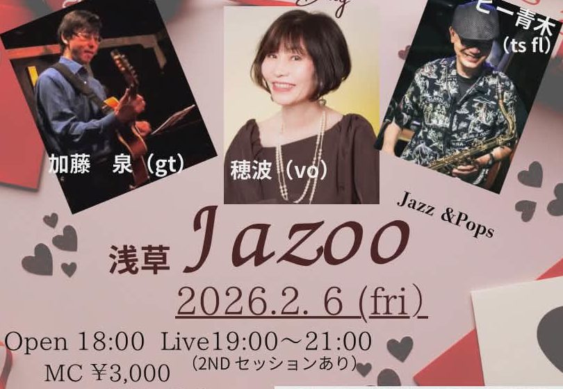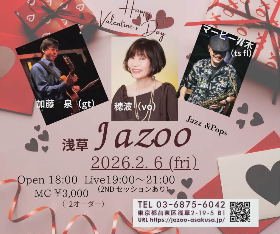 青木穂波Live 2月 6 Fri 2026 LIVE 青木穂波(Vo) マービー青木(ts,fl) 加藤泉(gt) OPEN 18:30 START 19:00 CHARGE 3000 前のスケジュール 次のスケジュール