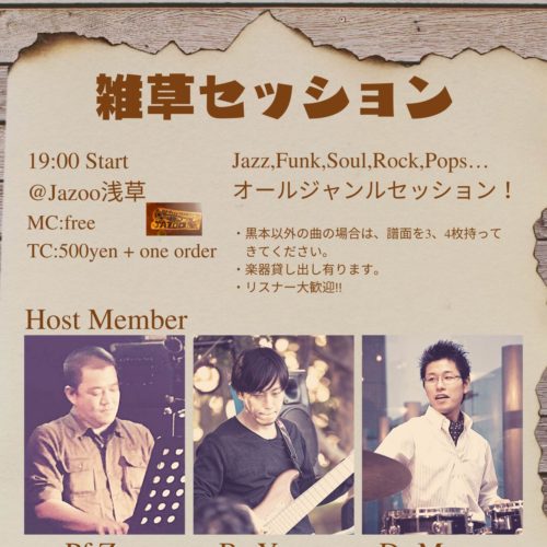 オールジャンルセッション!黒本以外の曲の場合は、譜面を3.4枚ご用意ください。楽器貸出あり!リスナー大歓…
