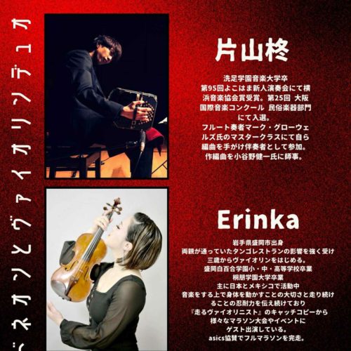 Erinka(Vn)片山柊(Bandneon)OPEN 18:30START 19:00CHARGE…