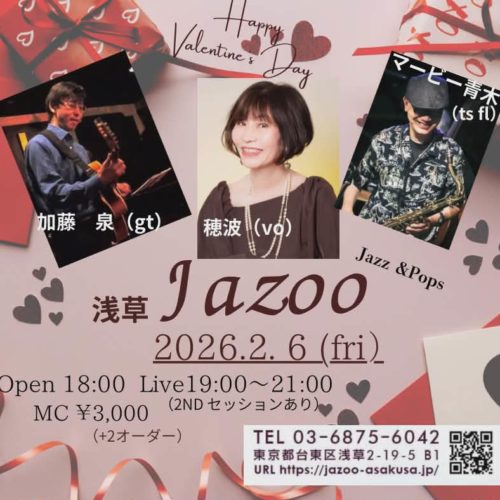 青木穂波(Vo)マービー青木(ts,fl)加藤泉(gt)OPEN 18:30START 19:00…